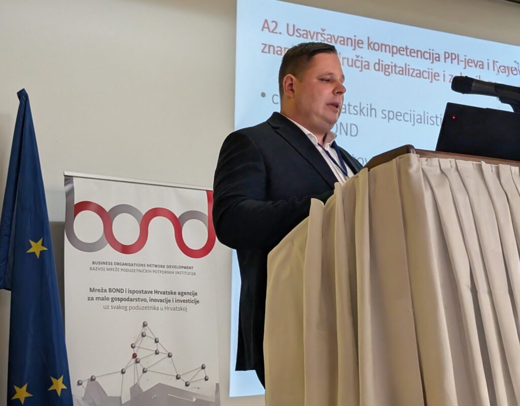 Tijekom konferencije voditelj projekta BOND 3 i Službe za koordinaciju HAMAG-BICRO-a Franjo Vukić predstavio je aktivnosti projekta BOND 3 te pritom istaknuo: „U Mrežu BOND početkom ove godine primljeno je 16 novih članica i trenutno Mreža okuplja 101 poduzetničku potpornu instituciju s područja Hrvatske. Značajan interes PPI-jeva iz cijele Hrvatske za umrežavanjem, jačanjem kompetencija njihovih zaposlenika te razvojem novih usluga, govori o dosadašnjem doprinosu BOND projekta. Kroz treću fazu projekta aktivnosti će biti usmjerene na razvoj, digitalizaciju i standardizaciju novih usluga za MSP-ove s naglaskom na uslugama iz područja istraživanja, razvoja i inovacija te internacionalizacije poslovanja putem PPI-jeva. Poduzetničke potporne institucije će se i u trećoj fazi provedbe projekta certificirati za pružanje pojedine usluge, nastavit ćemo s usavršavanjem kompetencija PPI-jeva i MSP-ova s naglaskom na ulaganje u znanja iz područja digitalizacije i zelenih principa poslovanja provedbom specijalističkih edukacija za članice Mreže BOND, studijskim putovanjima te osposobljavanjem zaposlenika PPI-jeva u relevantnim potporno-poduzetničkim institucijama u inozemstvu (job shadowing) kao i provedbom usluge poticanja studenata na poduzetništvo“.
