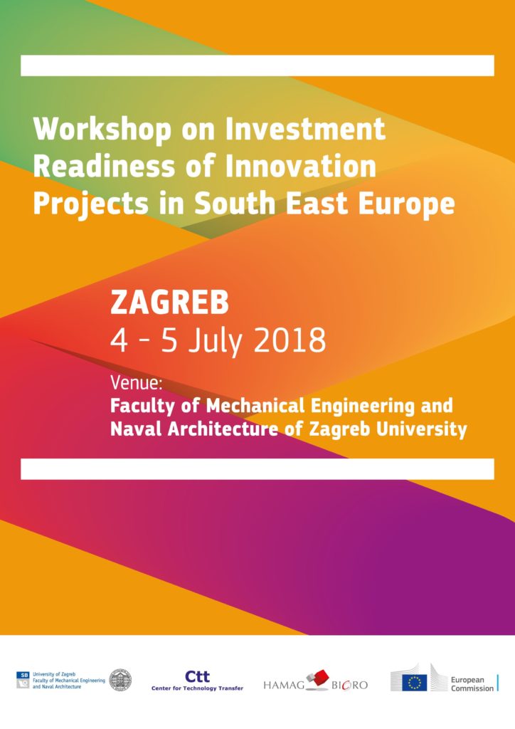 U Zagrebu 4. i 5. srpnja 2018. godine, na Fakultetu strojarstva i brodogradnje Sveučilišta u Zagrebu održat će se konferencija “Workshop on Investment Readiness of Innovation Projects in South East Europe” s početkom u 10 sati. Konferenciju organizira Zajednički istraživački centar Europske komisije (JRC) u suradnji s Fakultetom strojarstva i brodogradnje Sveučilišta u Zagrebu (FSB), Hrvatskom agencijom za malo gospodarstvo, inovacije i investicije (HAMAG-BICRO) i Centrom za transfer tehnologije d.o.o. (CTT).